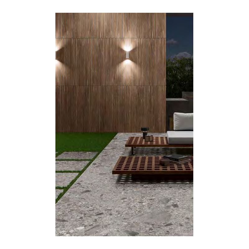 El material porcelànic assegura una resistència excepcional a la humitat, els canvis de temperatura i les gelades, cosa que la fa adequada per a climes extrems i usos intensius. Les seves peces estan rectificades, garantint juntes mínimes per a un acabat més uniforme. A més, gràcies a la seva tecnologia d'impressió digital, la col·lecció presenta un destonificat V1 que li aporta un aspecte natural i autèntic.