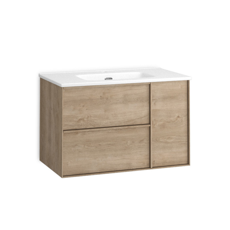 Pack Moble per a 1 lavabo encastat mural/paret Stillo Square, 2 calaixos 1 porta roure natural