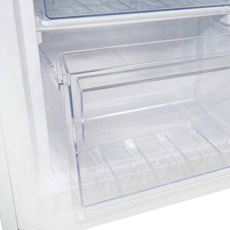 Aquest combi d’instal·lació lliure inclou un calaix per a fruites i verdures, tres prestatges de vidre (dos regulables), il·luminació interior LED i baldes a la porta, aportant un disseny funcional i modern. El congelador compta amb dos calaixos, una safata extraïble, descongelació automàtica i una autonomia de 7 hores en cas de tall elèctric.