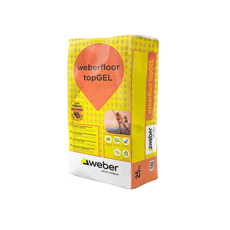 Weberfloor TOPGEL es un gel autonivelante rápido reforzado con microfibras de vidrio, diseñado para espesores de 1 a 10 mm. Este recrecido técnico polimérico de altas prestaciones es ideal para el alisado y regularización de pavimentos interiores en capa fina, garantizando superficies de alta planimetría y acabados muy finos. Su fórmula avanzada de retracción compensada y fibras reduce significativamente la aparición de fisuras, convirtiéndolo en la solución perfecta para la colocación de pavimentos ligeros, cerámica y suelos técnicos.