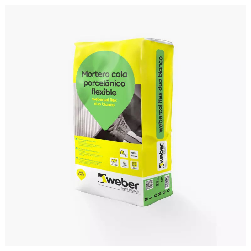 El Adhesivo Flexible Webercol Flex Duo es un mortero cola porcelánico de altas prestaciones, ideal para renovar pavimentos y paredes, tanto interiores como exteriores. Diseñado para colocar gres porcelánico sobre alicatados cerámicos antiguos, ofrece excelente flexibilidad y adherencia, siendo perfecto para baños y piscinas.