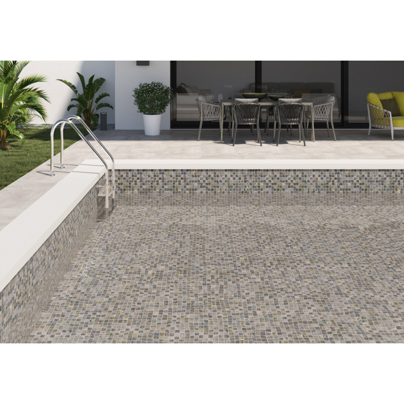 El modelo BORA BORA de la marca EL MOLINO es un revestimiento porcelánico de alta calidad, diseñado específicamente para embellecer y garantizar la durabilidad de piscinas y otros espacios. Con un formato de 33,3x33,3 cm (13,1''x13,1''), este producto se adapta perfectamente a diversas superficies, ofreciendo un acabado brillante que realza la luminosidad y elegancia del entorno.