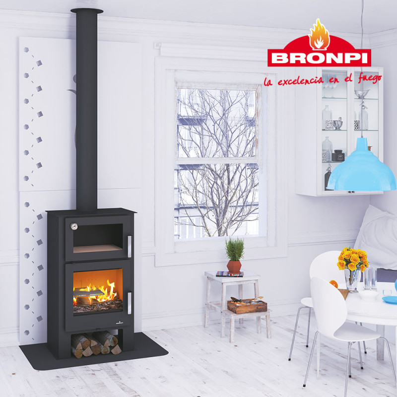 El sistema de doble combustión mejora la eficiencia energética y reduce las emisiones, mientras que la tecnología de cristal limpio mantiene la visibilidad de la llama. Su interior de vermiculita contribuye a una mejor retención de calor. Además, incluye un horno integrado con una boca útil de 400 x 215 x 340 mm, ideal para cocinar y hornear, añadiendo valor funcional al producto. La parrilla de fundición extraíble facilita su limpieza.