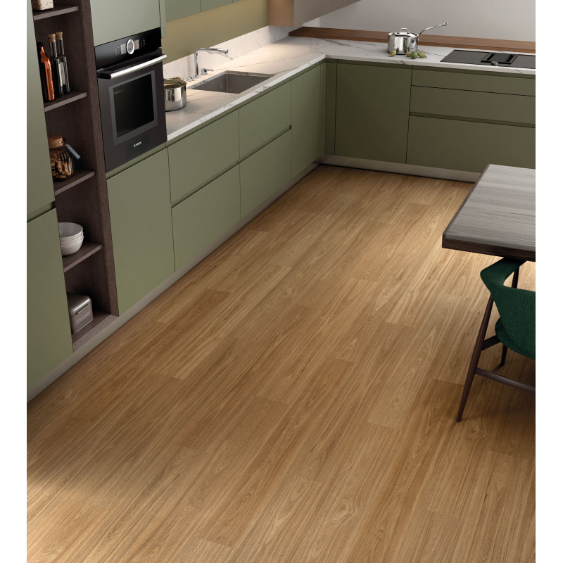 El sistema de instalación clic facilita su montaje sin necesidad de adhesivos, mientras que su capacidad para cubrir hasta 81 m² sin perfiles garantiza una continuidad visual impresionante. Este modelo también es compatible con sistemas de calefacción radiante y cuenta con propiedades antiestáticas y una alta clasificación de seguridad al fuego Bfl s1.