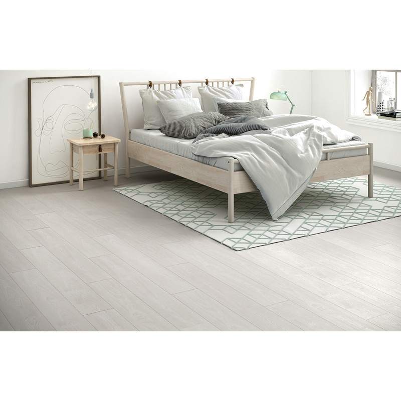 El Roble Kalmar Blanco de la marca FINFLOOR es una opción elegante y versátil para cualquier espacio. Su tono blanco limpio y uniforme, combinado con un diseño sincronizado que imita fielmente la textura del roble, aporta un carácter atemporal y una sensación de amplitud en los ambientes. Este modelo destaca por su formato EVOLVE, con dimensiones de 1331 x 194 x 8 mm, que ofrece proporciones armónicas y facilita su instalación en todo tipo de estancias.