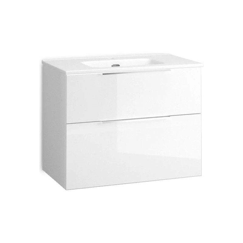 Compact propone muebles suspendidos de dos cajones de madera en lacado en alto brillo y laminado madera. Cajón inferior de gran capacidad.