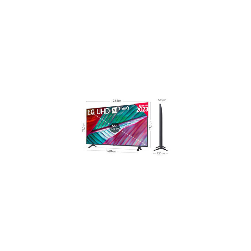 El LG 55UR78006LK funciona con el sistema operativo webOS 23, ofreciendo una interfaz intuitiva y acceso a una amplia gama de aplicaciones de streaming y contenido en línea. Su conectividad es robusta, incluyendo Wi-Fi, Bluetooth 5.0, tres puertos HDMI 2.0 y un puerto USB 2.0, facilitando la conexión de diversos dispositivos externos.